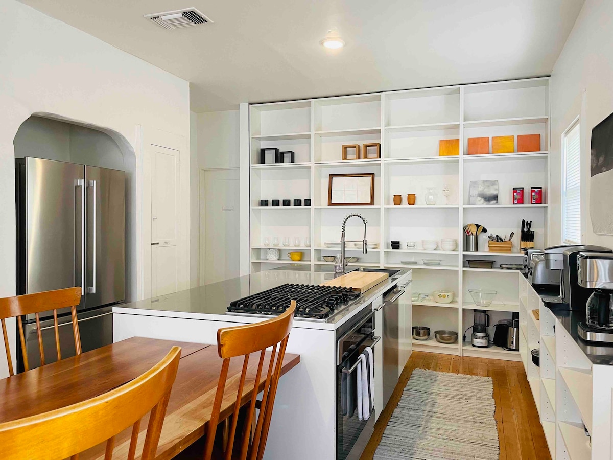 A Tucson Poet's Studio szerepelt az Architectural Digest (2025. 10. 01.) „50 Best Airbnbs Across the United States”, a New York Magazine (2015. 06. 19.) „Taste the Flavors of Tucson” és a LivAbility (2018. 07. 06.) „Accessible Airbnb” című kiadványaiban. *ÚJ* EV-töltő! A stúdió a főházzal közös, falakkal körülvett udvaron és medencén keresztül közelíthető meg, ahol a férjemmel együtt élek. A Peter Howell negyedben található egy kényelmes belvárosi terület, közel mindenhez (2,5 mérföldre UA-tól, 5 mérföldre a belvárostól).