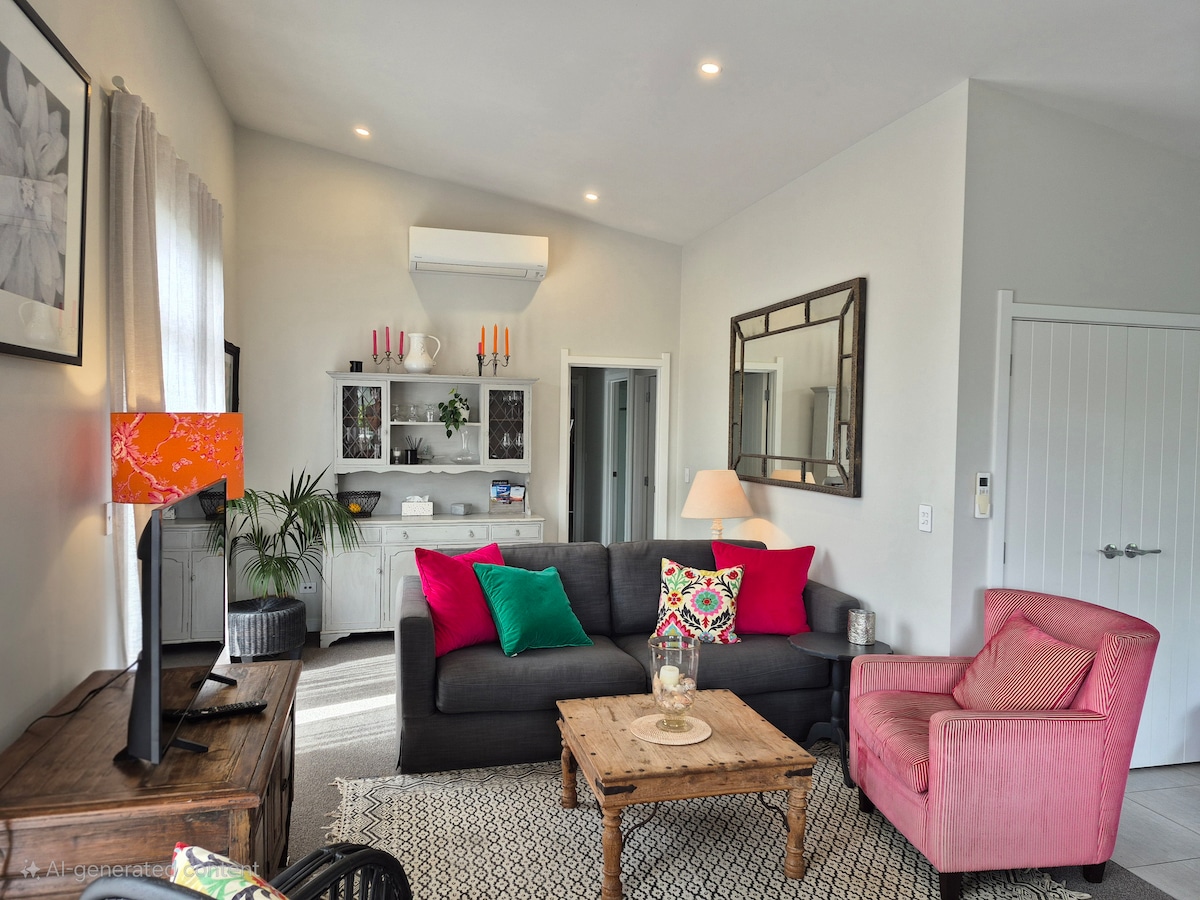 Kényelmes, önálló két hálószobás házikó, csak egy sétányira Havelock North Village szívéből. Közvetlenül a Village Green – játszótérrel és nyilvános úszómedencékkel – szemben, valamint a közösségi központ és a könyvtár mellett található, így nehéz ennél központibb helyet találni. A kényelmes és egyszerű kialakítású, nyitott terű nappaliban nagy, hangszigetelt üvegből készült, kétszárnyú ajtók nyílnak egy privát udvarra, így könnyedén lehet váltani a beltéri és kültéri tér között.