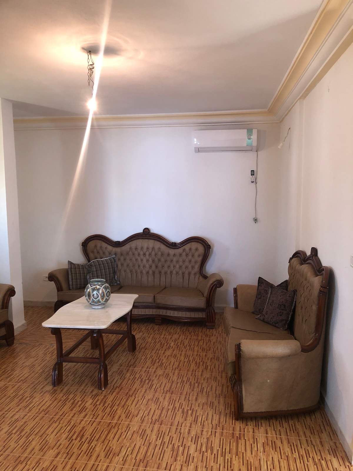 A Charming One-Bedroom Apartment in the Heart of Tunis Welcome to our delightful one-bedroom apartment nestled in the vibrant capital of Tunisia. Spanning 75m², it offers a comfortable retreat for more than two guests. The bedroom features a queen-sized bed, and the living room boasts two cozy sofas with a charming atmosphere. Additionally, you'll find a dedicated workspace or a charming dinner table to cater to your needs. a spacious bathroom with a bathtub and a coquette kitchen.