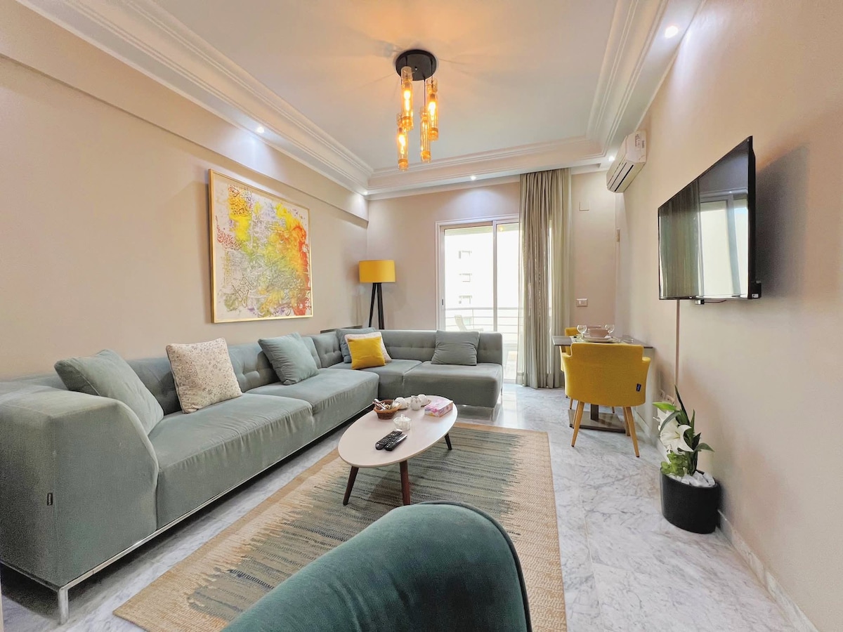 Détendez vous dans ce logement calme et cosy, luxueusement équipé et avec un décor harmonieux assurant un séjour agréable. L’appartement est situé dans une zone résidentielle calme, comprend un salon avec un canapé-lit , une chambre à coucher avec balcon et une Kitchenette bien équipée. 📍Niché à proximité de toutes les commodités: Carrefour, restaurants, cafés, lounges, salle de sport, pharmacie… L’aéroport de Tunis Carthage est à 5 minutes.