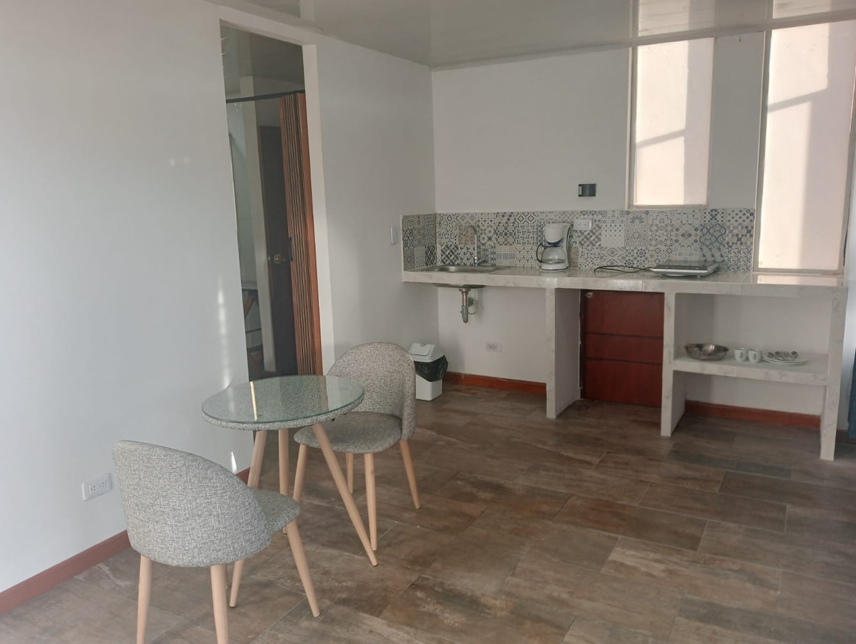 Hangulatos stúdiólakás az első emeleten, ideális a pihenéshez és Tunja élvezetéhez. Modern nappalival, négy fős étkezővel, felszerelt konyhával és zuhanyzóval, mosdóval és külön WC-vel rendelkező fürdőszobával rendelkezik. A szoba tágas, kétszemélyes ággyal és meleg légkörrel. Van garázsa, ha szükséged van rá. Az UAN mellett található, a tűzoltóság közelében, és néhány percre a történelmi központtól. Tökéletes üzleti utakhoz vagy párok kiruccanásához.
