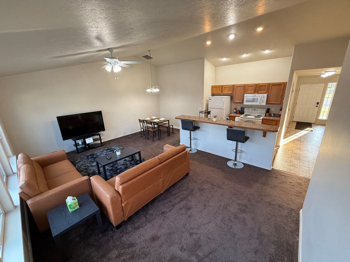 Nagyon új, rendkívül tiszta, 1 hálószobás stúdió. Kényelmes elhelyezkedés az államközi utazásokhoz. Saját külső bejárat és utcai parkolás. 1 franciaággyal, kiváló minőségű kétszemélyes kihúzható ággyal, teljes konyhával, fürdőszobával, valamint mosógéppel és szárítógéppel rendelkezik. Egy új negyedben található, a kanyon pereme közelében. Gyalogos ösvény vezet a Falls & Perrine Bridge-hez 5 perc sétára! Több mint 15 étterem, Costco, Target, élelmiszerbolt, kávé és vásárlás 5 perces autóútra. LENYŰGÖZŐ hely a Twin Falls által kínált összes élményhez.