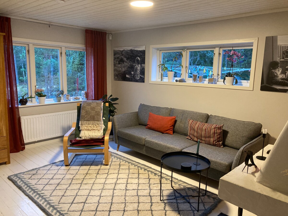 Üdvözöljük Insjönben található házunkban – egy csendes, zöld és biztonságos szálláshelyen. 20 percre van Stockholm városától, ugyanakkor közel van a szigetvilághoz, a Velamsund természetvédelmi területhez, egy strandhoz és egy úszásra alkalmas tóhoz, amely egy perc sétára van a háztól. Nyáron evezős csónak is elérhető. A ház tökéletes gyermekes családoknak vagy nagyobb csoportoknak. A kertben rengeteg játék, babaágy, gyerekszék és egy játszótér van hintákkal, csúszdával, játszóházzal és trambulinnal.