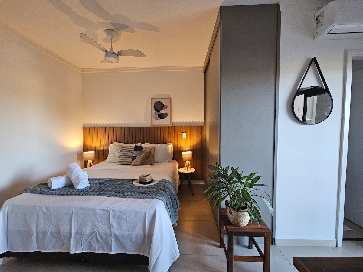 Hangulatos stúdió 400 méterre a Praia do Perequê-Açútól! Élvezd a légkondicionálást, az Amazon Prime-mal felszerelt okostévét, a queen méretű ágyat, a kanapéágyat és a grillrészes privát ínyencsarokot. A garázsod (2,30 m X 4,60 m) elektronikus kapujával praktikus. Pihenj az ötödik emeleti közös medencében. Minden közel van: pékség (250 m), benzinkút (250 m), gyógyszertár (200 m), buszmegálló (300 m), szupermarket (700 m) és könnyű hozzáférés a strandokhoz. A tökéletes kiruccanás Ubatubában!
