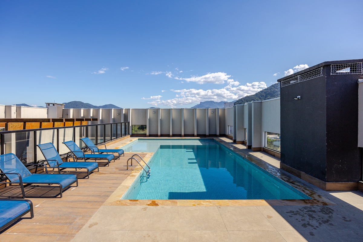 Welcome to a piece of paradise in the best area of Praia Grande. Fiji Residential Condominium offers great leisure facilities, just meters from the sea and near an Atlantic Forest reserve. The apartment is new and modern, with air conditioning, custom furniture, and a full kitchen. Located on the 4th floor, it has a balcony overlooking the pool. It includes a private covered parking space and accommodates up to 4 people — two in the double bed and two on the sofa bed.
