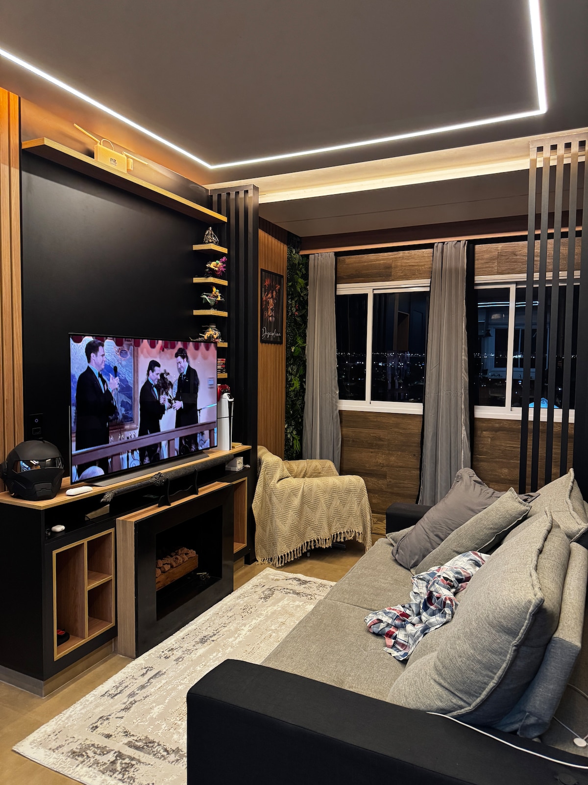 Apartamento com muito estilo e tecnologia, contando com sala com TV de 55’ Oled, lareira ecológica, espaço coworker e hidromassagem. Cozinha com geladeira três portas, fogão, airflyer, microondas, máquina lava & seca, um quarto suíte com cama de casal e tv, dois banheiros. Porta de acesso por senha, vaga de garagem coberta.