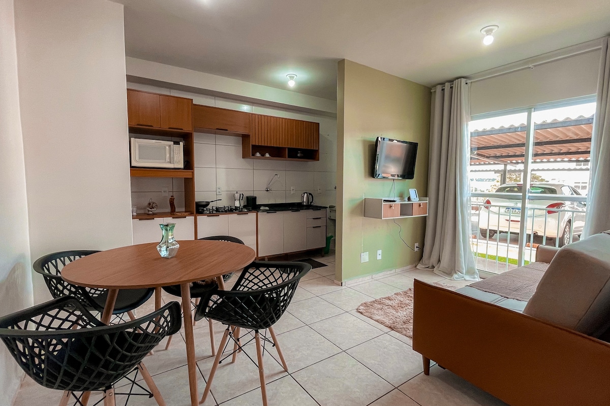 Apartamento amplo, moderno e aconchegante, ideal para curtas ou longas permanências. Conta com dois quartos e acomoda confortavelmente até 6 pessoas. Perfeito para casais, famílias ou quem viaja a trabalho. Localização excelente, próxima ao IFPR e à BR, com farmácia, padaria, mercados, restaurantes, lavanderia e posto de combustível a poucos passos. Garagem disponível. Será um prazer ter você conosco!