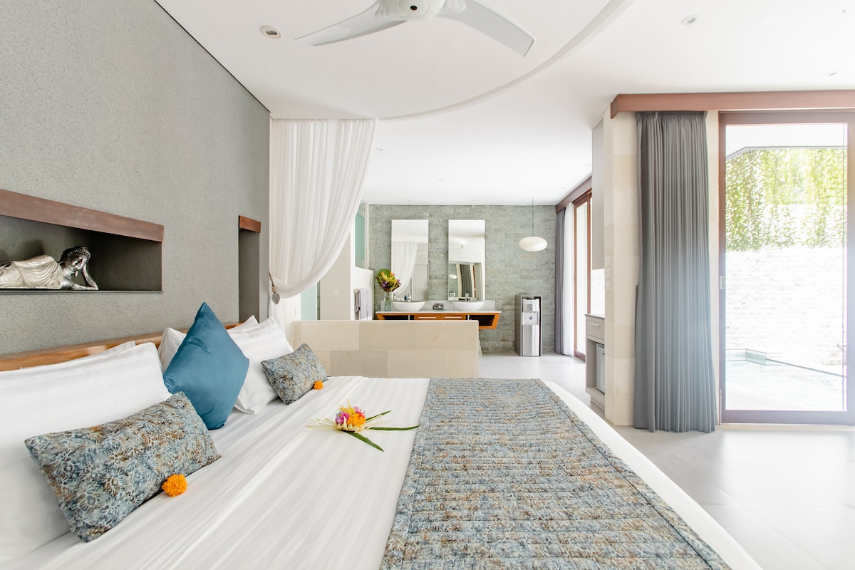 <b>Luxusüdülés Ubudban</b> ➤ <b>Tágas és modern:</b> egy nagy, nyitott terű butikszálloda ➤ <b>Tökéletes kényelem:</b> szuper king méretű ágy (210 cm x 210 cm) ➤ <b>Privát merülőmedence:</b> élvezd a saját, félreeső merülőmedencédet ➤ <b>Közel az akcióhoz:</b> 2,5 km-re Ubud nyüzsgő központjától ➤ <b>Kapcsolódás a természettel:</b> tökéletes a természetes környezetbe való elmerüléshez <b>Az Ubud-élmény</b> Balinéz derű, amely egyesíti Ubud energiáját és természetes nyugalmát.