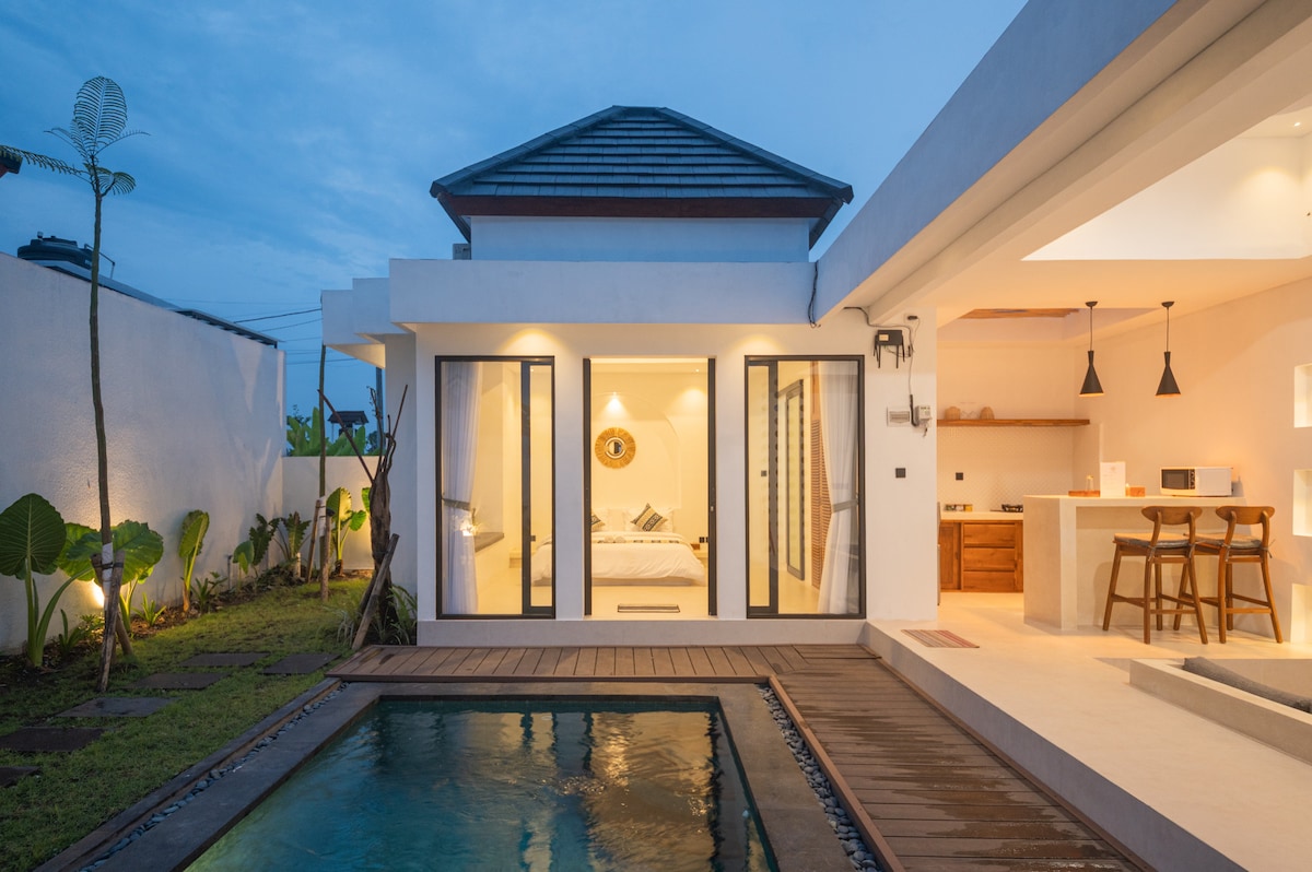 Welcome to Villa Dwipa ☀️ A place where you can indulge yourself in the beauty and luxury of a completely private Bamboo Villa and all it’s facilities surrounded by peaceful nature 🍃 From a dive in the private pool, watching a movie on the drop down cinema screen and having a neighbor-less party in the living room to spending peaceful quality time, cozily unwinding on the balcony and everything in between, whether you're friends or lovers, we guarantee you a good time 😊