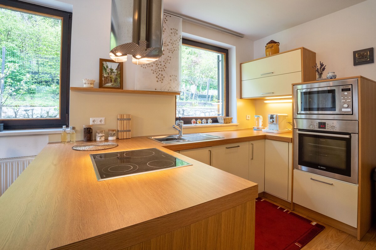 Függetlenül attól, hogy a gyönyörű hegyeink, a síelés, a biciklizés és a túrázás miatt érkezel... ez a te helyed. Apartman a felső emeleten a ház kínál 2 szoba (1 king-size ággyal és egy nappaliban egy kihúzható kanapéval), hogy a közös erkély. A konyha fel van szerelve minden alapvető főzőeszközzel és hűtővel. A tágas fürdőszoba mosógéppel van felszerelve. Minden igényedről gondoskodni fogunk. Üdvözlünk!