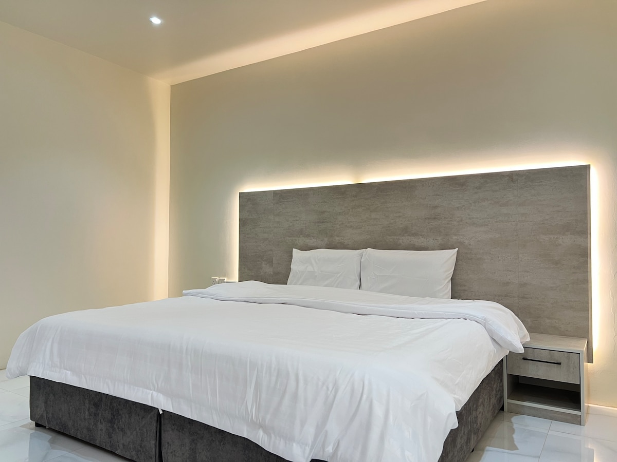 Élvezze az egyedülálló és kiváló lakhatási élményt Sultana szívében, ahol a kényelem és a nyugalom ötvöződik, és közel van minden létfontosságú szolgáltatáshoz. - A lakás a következőkből áll: • Tágas és kényelmes nappali • Okos TV képernyő • Fürdőszoba minden tartozékával • Teljesen felszerelt konyha • Hűtőszekrény • Automata mosógép + ruhaszárító és vasaló A környék az egyik legnépszerűbb környék, és itt éjjel-nappal biztosítjuk, hogy a legjobb szállást kapja.