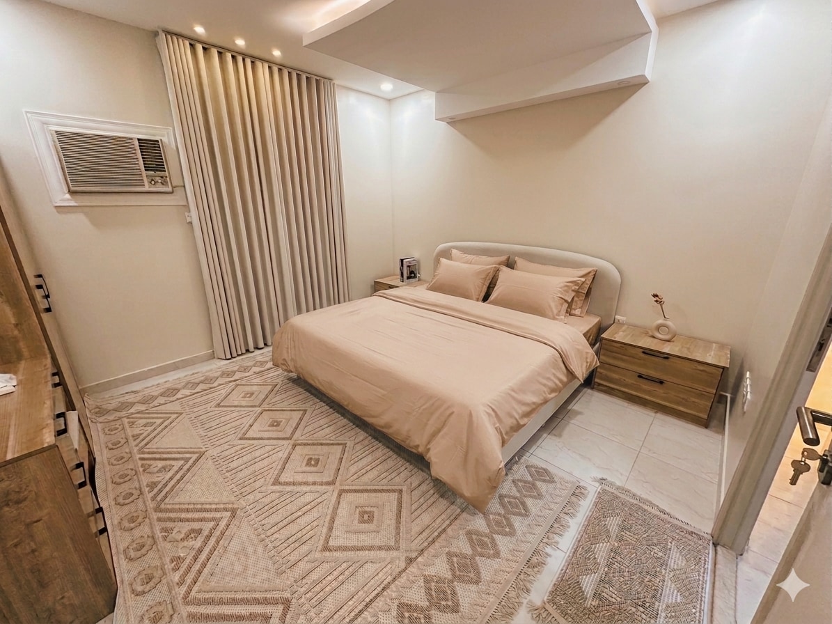 Cozy 1BR Apartment with Living Room & Small Kitchen – Special Discount ✅ Enjoy a comfortable stay in a stylish apartment near the Holy Mosque, perfect for short or long stays. It features a king-size bed, modern bathroom, self check-in, high-speed WiFi, Smart TV, and a kitchenette with kettle, microwave, mini fridge, and stovetop. The apartment is 10 minutes by car to the Haram and 7 minutes walking to the shuttle bus. Elevator access and essential amenities ensure a relaxing stay.