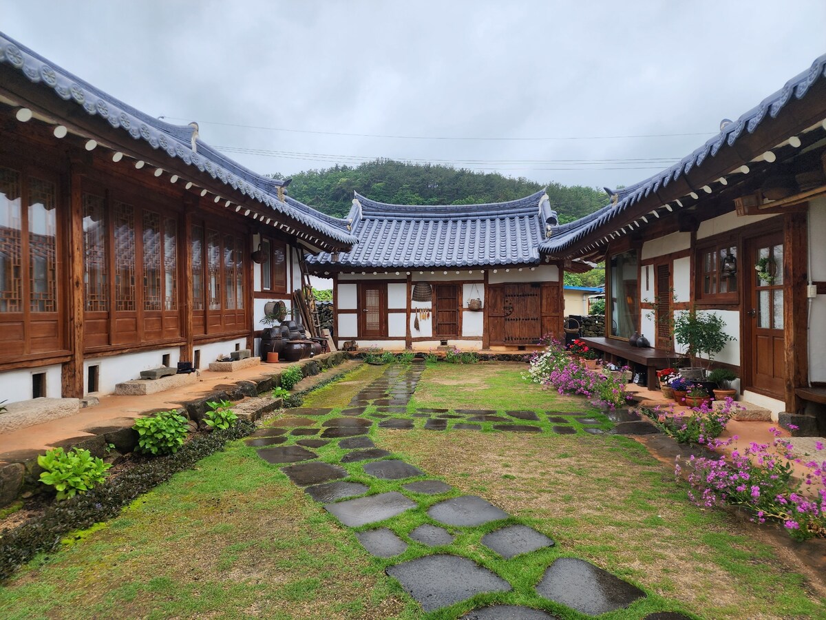 80년이 되어가는 오래된 한옥에 레트로 감성 한스푼 추가했습니다. 다채로운 꽃과 나무가 있는 정원에 귀여운 길냥이들도 가끔씩 드나드는 평화로운 집!! 방바닥에 누워 아름다운 서까래를 감상하고 바람좋은 툇마루에 차 한잔의 여유도 누려보고 번잡한 도시와 익숙함을 벗어나 잠시 내려놓고 쉬어 가시길 바랍니다. 가 볼만한 곳으로는 당항포 관광지, 장산숲, 공룡박물관, 상족암, 학동 돌담길, 송학 고분군, 옥천사, 구절산 구절암 출렁다리가있고 섬처럼 한적한 동해면을 차로 한바퀴 돌다보면 거칠게 일렁이던 마음속 소용돌이도 시선닿는 잔잔한 호수같은 바다 풍경에 어느듯 가라앉게 됩니다. 곳곳에 위치한 멋진 바다뷰 까페에 들러 커피 한잔의 여유도 누려보고 눈에 뛰는 낯선 식당에도 들러 지역의 맛도 경험해 보시길 권해드립니다