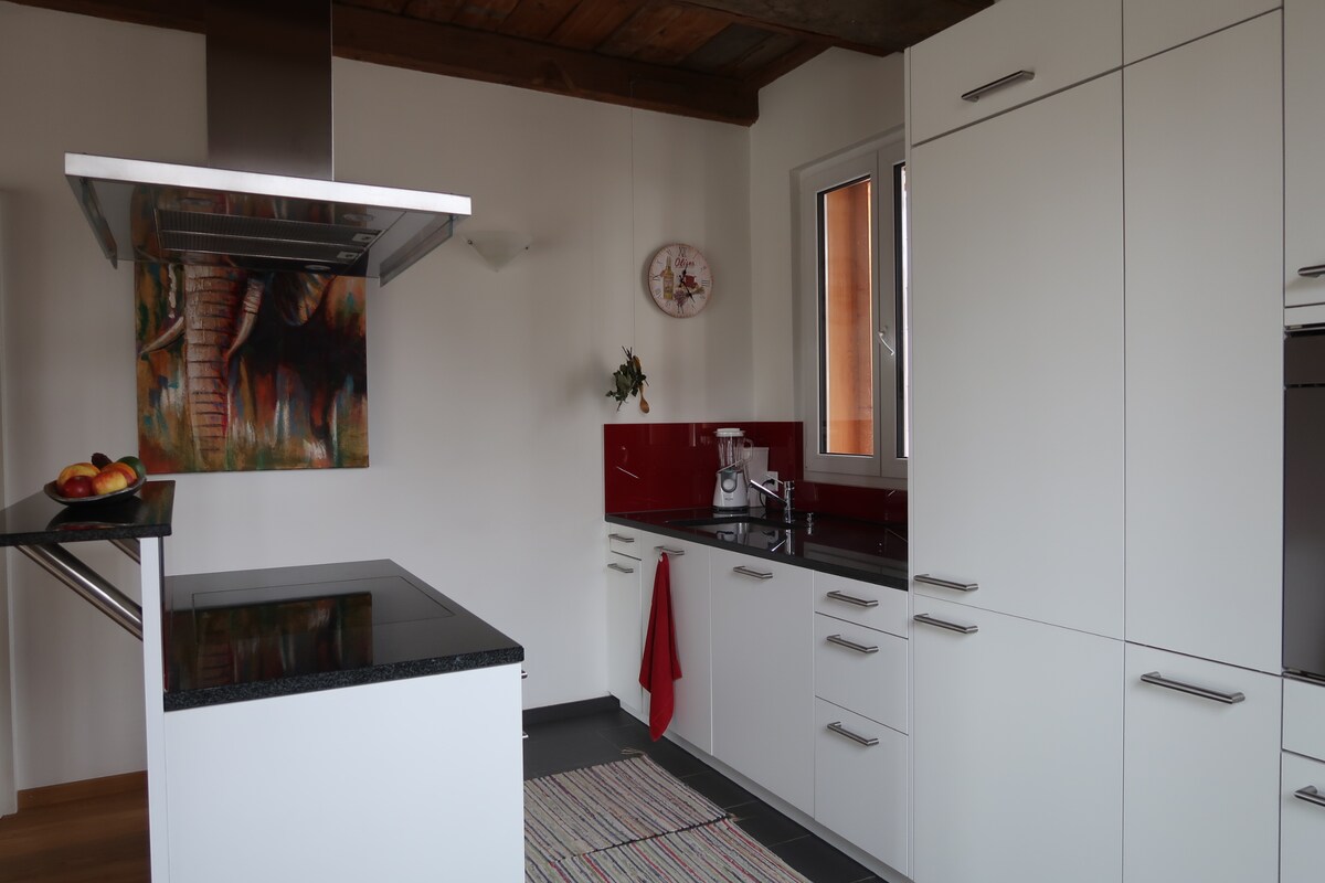 New spacious quiet apartment (115m2), with fantastic view on the river and into the green hills. Guests have access to a private parking spot in the underground garage with wallbox to charge the car, a high-end kitchen with oven, steamer, dishwasher, etc., private washer/dryer, two bathrooms (shower/wc, bathtub/wc), two bedrooms and a comfortable office space. The Zurich city center is only 10 minutes away by public transport and can also be reached by bicycle. Perfect for long-stay and families