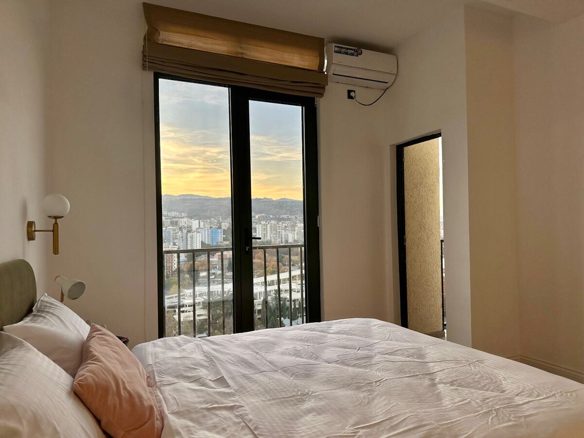 Experience the best views from the 15th floor! This 42 sqm apartment offers a peaceful escape with a separate bedroom and a stunning mountain view. My motto is "cleanliness, cleanliness, and cleanliness" Location: Mtsvane St. Very quiet neighborhood. Convenience: Carrefour market is on the 1st floor. Transport: 15 min walk or 4 min bus ride to the Subway. Work-ready: Fast Wifi (30-40 Mbps) and dedicated workspace. Relax and breathe fresh air in this tidy, fully equipped home.