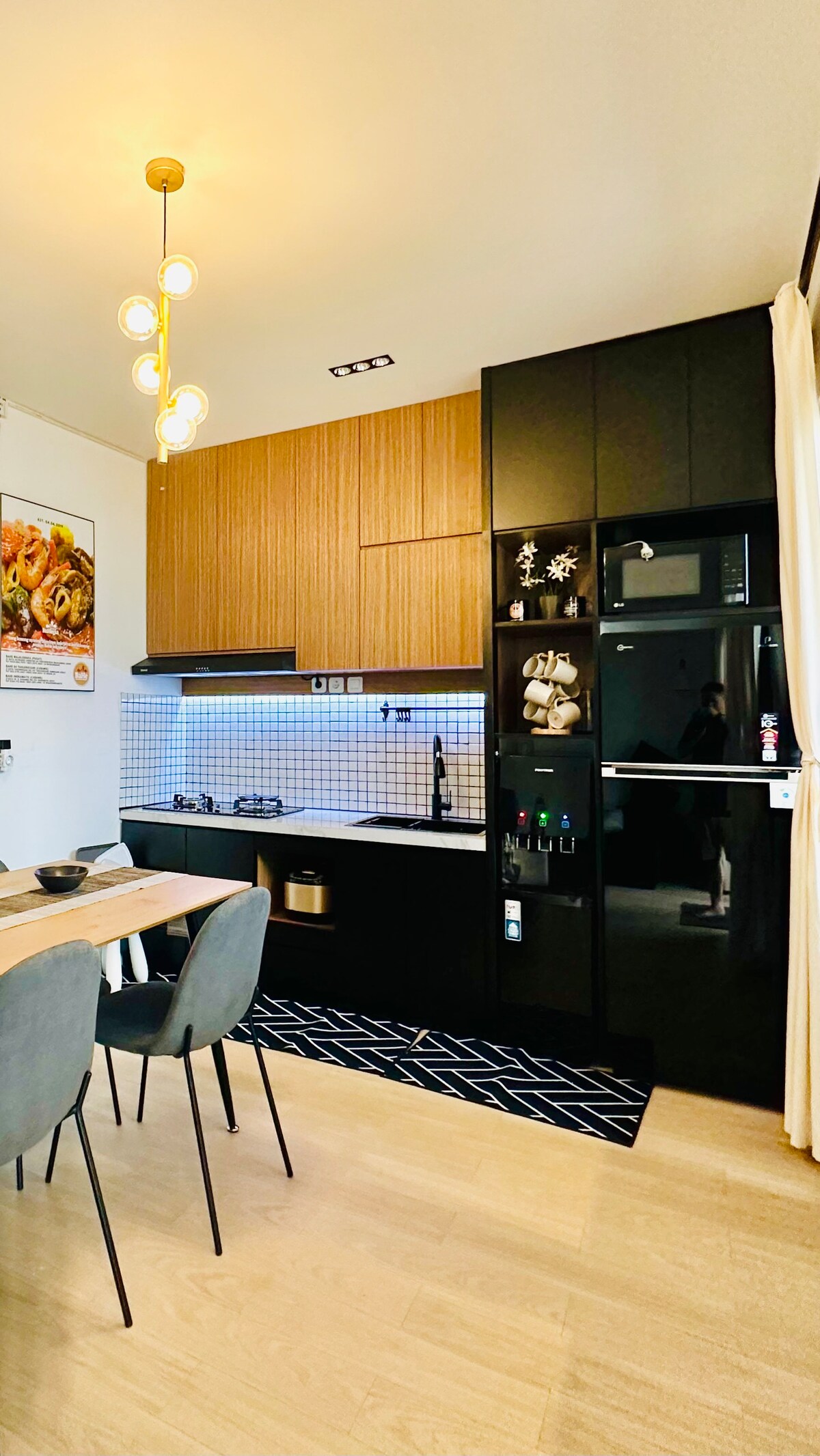 Üdvözlünk ebben a modern, Jatinangor szívében található saroklakásban, amely mindent kínál, amire szükséged van a kényelmes és praktikus élethez. Ebben a saroklakásban egy kényelmes, 120x200 cm-es emeletes ágy található, amely tökéletes egyedül utazóknak, pároknak vagy akár egy kétgyermekes családnak is. Van egy íróasztal nagy sebességű Wi-Fi-vel, és két erkély is van ebben a térben A saját fürdőszobában zuhanyzó, mosdó és WC található.