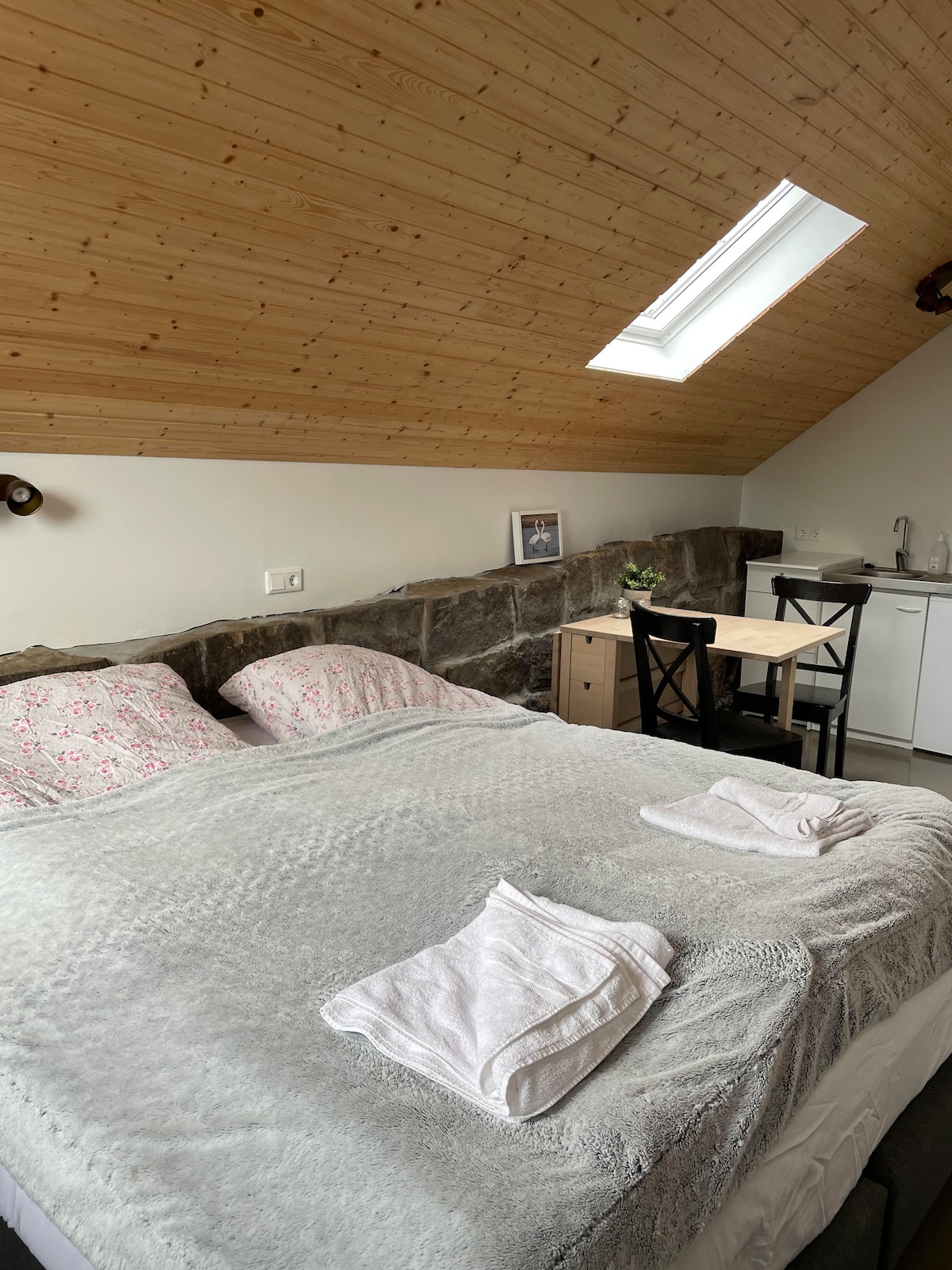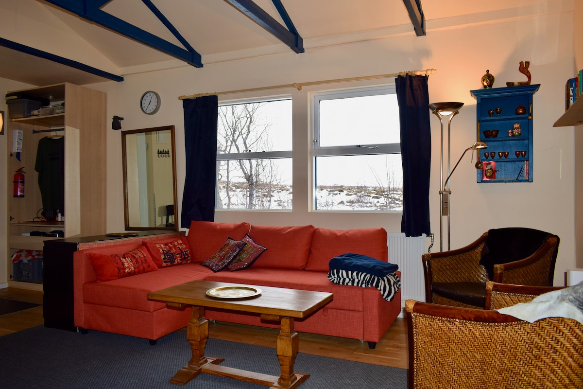 Studio apartment located on a farm only 20 minutes from Reykjavík!:) on the way to the golden circle which offers room for two people. Come and stay at our farm and visit our wonderful animals and/or get fresh egg from our chickens in the morning to cook in the apartment. There are also fun experiences around our farm such as a lot of beautiful hiking trails, horse riding and more. It's a very good location to plan day trips from. If there are northern lights you can see right outside the door.