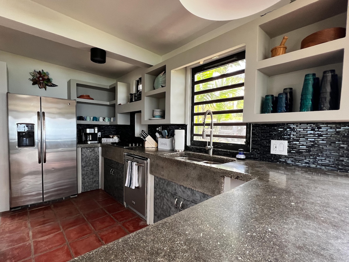 Tökéletes hely a lazításra és a természet élvezetére. Modern stílusban terveztük, és teljesen felszerelt konyhával, teljes fürdőszobával és kültéri zuhanyzóval rendelkezik, valamint legfeljebb 3 vendég elszállásolására alkalmas. Pihenj a gyönyörű merülőmedencében, élvezd a grillezést a teraszon, és aludj el a coquí-békák nyugtató hangjaira a buja trópusi növényzetben. Időnként aranyos, barátságos cicák sétálhatnak át a kültéri területeken, ami még inkább fokozza az ingatlan természetes varázsát és meghitt hangulatát.