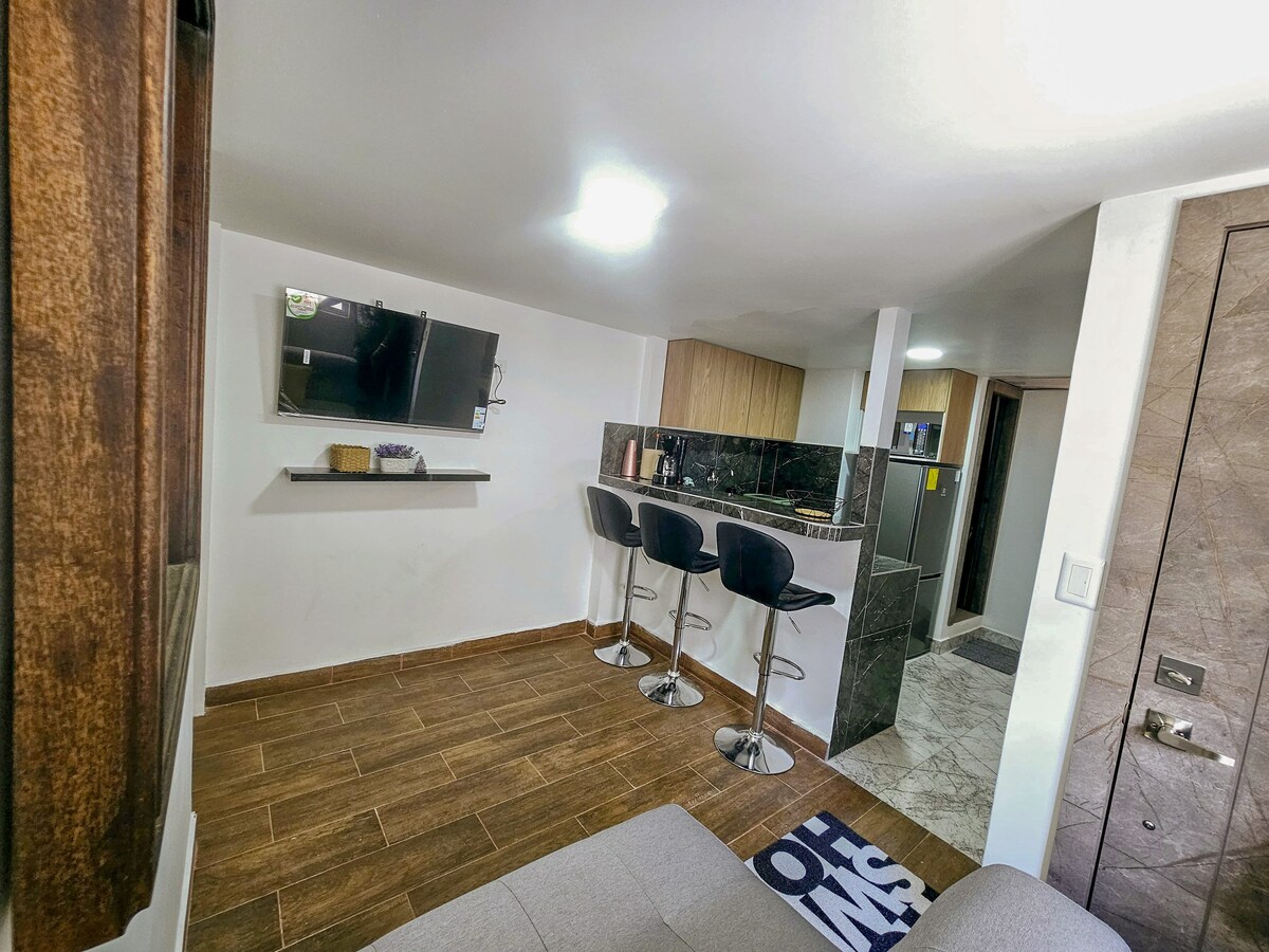 Hangulatos, átalakított lakás Quito gyarmati negyedében, a harmadik emeleten, egy loftlakás, ahonnan csodás panorámakilátás nyílik a történelmi központra. Két hálószobája, két fürdőszobája, egy nappalija, egy étkezője és egy konyhája van, amely szűrt vízzel és alapvető eszközökkel van felszerelve, hogy megfeleljen a vendégeink igényeinek. A kényelmes létesítmények jó kikapcsolódást biztosítanak. Van 620 Mbps-es és 1,05 Gbps-es Wi-Fi-nk, telefonvonalunk, Netflixes tévénk, valamint fűtésünk a zuhanyzóhoz és a konyhai mosogatókhoz.