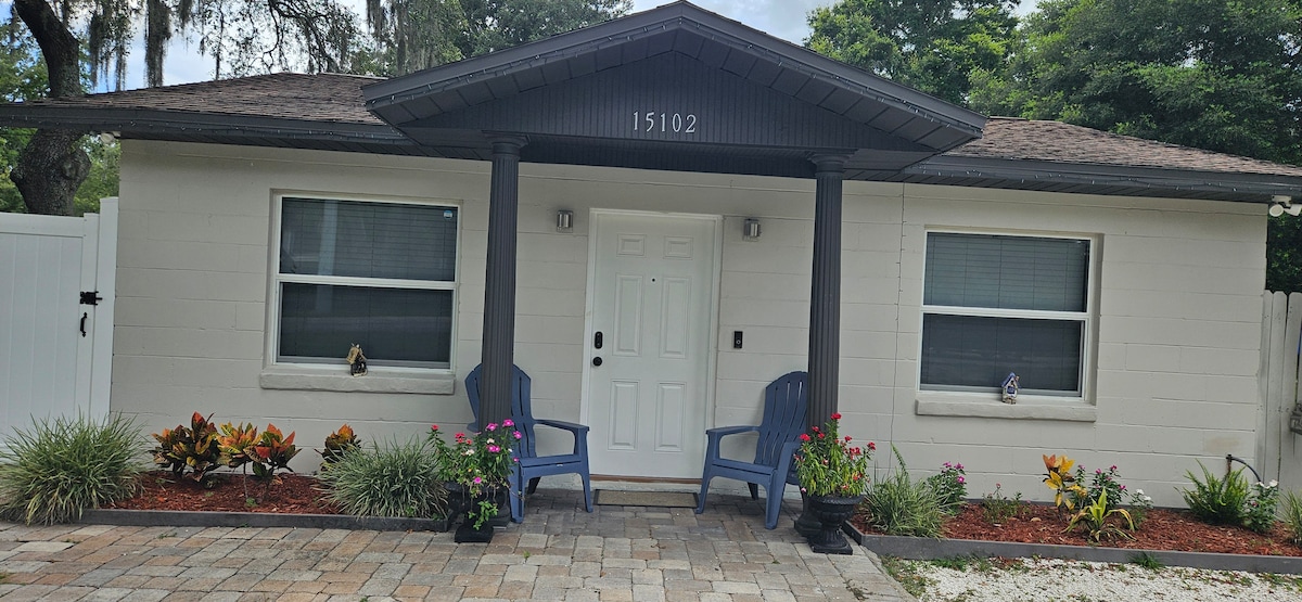 Rise & Shine in our Oakleaf Tiny Home complete with a smart HDTV, comfy queen bed, full bathroom, and wonderful kitchenette. This tiny home has 240 SqFt of peaceful coziness. Enjoy your morning coffee on a custom made porch facing a lush green privacy wall while enjoying a Florida Sunriseđ The best part is that the itâs centered in the heart of Tampa Bay, close to the best attractions & hotspots. The neighborhood is quiet and safe. We look forward to hosting you!