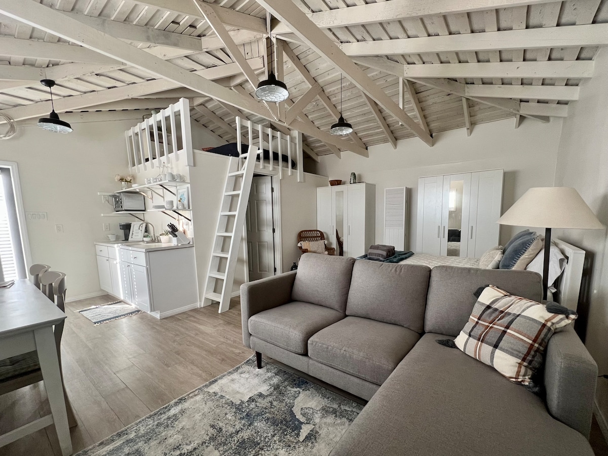 1 hálószoba és loftlakás 1 king méretű ággyal és 1 queen méretű ággyal. Strand témájú egységünk ideális hely a központi partvidék által nyújtott lehetőségek eléréséhez. Főzz egy finom vacsorát a teljesen felszerelt konyhában, kortyolj egy pohár bort a saját teraszodon, vagy nézz tévét a kényelmes nappaliban. Az UCSB, a Sandpiper golfpálya, a Beach és a Bacara Resort and Spa közelében. És fél óra alatt eljuthatsz a borvidékre.