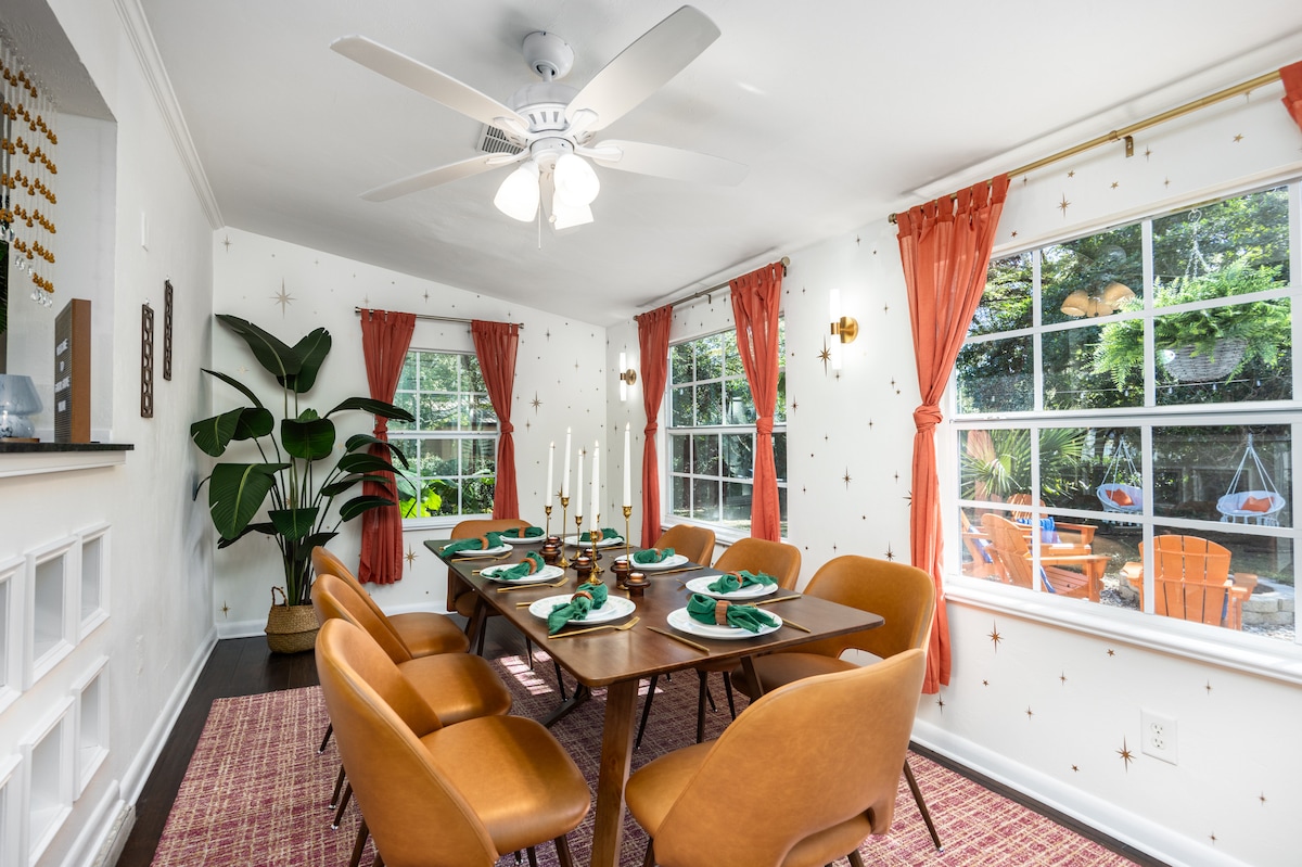 Welcome to our spacious and comfortable 3-bedroom, 2-bath retreat in the heart of downtown Gainesville! Nestled on a quiet street, we are walkable to both UF and downtown's best local bars and restaurants. The Perfect Space for families, groups, or game-day getaways, the home features a fully equipped kitchen, Fast Wi-Fi, a dedicated workspace, and central AC, a cozy electric fireplace, and a fully fenced yard. Comfortably sleeps your group for game-day weekend or vacation.