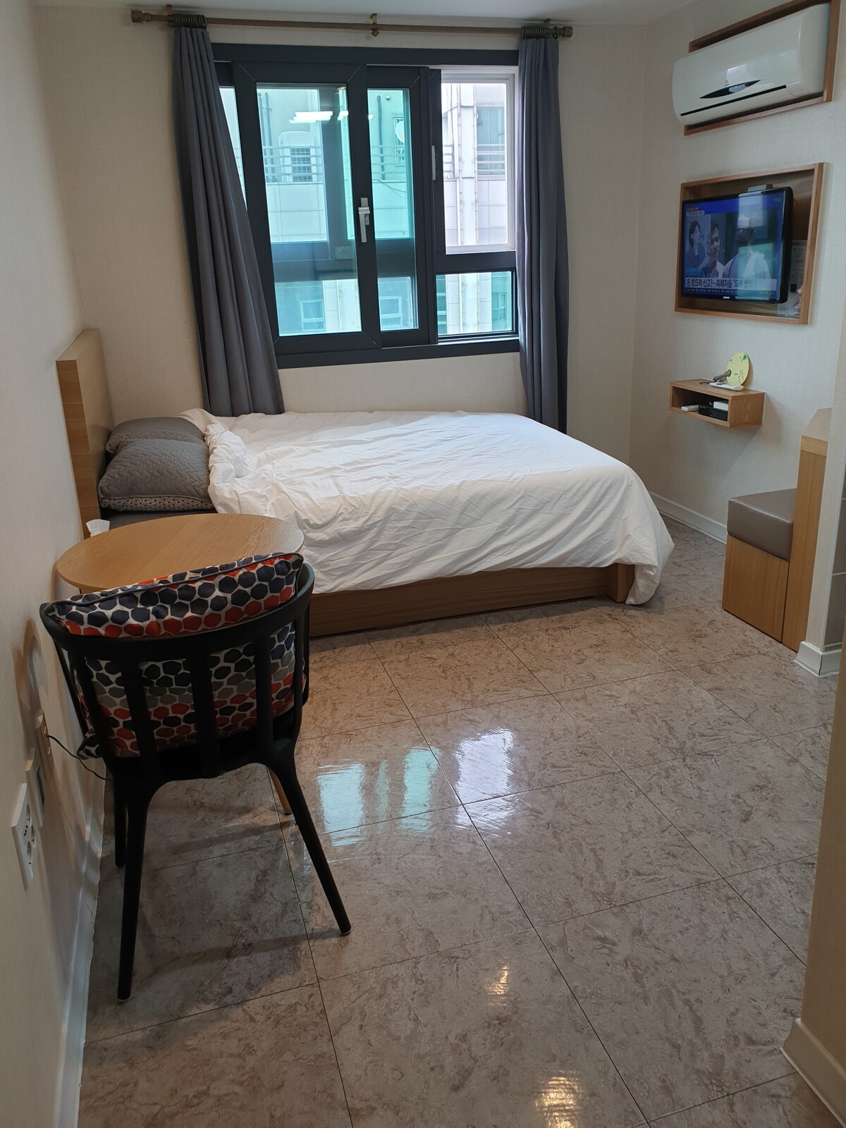 * 5 perc sétára a Sacred Heart Cathedral Main Store-tól, * 2 perc sétára a Jungangno állomástól, * 10 perc sétára a Daejeon állomástól, 9 perc autóval a Hanwha Baseball Stadiontól Van egy új ikerágyunk, ahol kényelmesen és kellemesen pihenhetsz, és szekrénnyel, asztallal, székkel, TV-vel, hűtőszekrénnyel és tükörrel is fel van szerelve. Hajszárító és hajsütővas is rendelkezésre áll. A fürdőszobában az olimodeling után biztosítunk sampont, kezelést, tusfürdőt, fogkrémet, fogkefét, törülközőt és vécépapírt. A közös konyha mosógéppel, szárítógéppel, víztisztítóval, indukciós és konyhai eszközökkel rendelkezik, így nagyon kényelmes a hosszú távú foglalásokhoz. A parkolás megengedett.