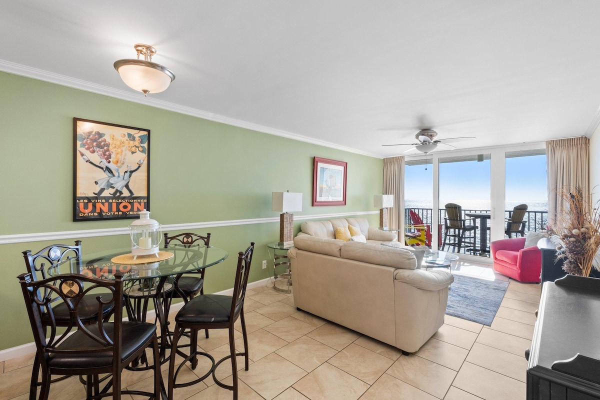 Direct Ocean Front Views! Beautiful Updated Condo on the 8th floor!! Watch the dolphins from your balcony. The Sunbird condo is a wonderful place to enjoy a family vacation or a quiet romantic getaway. The complex offers 3 pools, fitness center, vending area, grilling area, new composite boardwalk where you can enjoy a leisure or sunbathe at the Gulf coast beach! This 1BR 1BA unit is fully furnished and has a well stocked kitchen. YOU MUST BE AT LEAST 25 YEARS OLD TO BOOK AND REGISTER ON SITE!