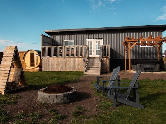 This place is truly one of a kind. Ocean front tiny house cabin situated directly on the Northumberland Straight. You will witness million dollar sunsets/ sunrise while relaxing in an outdoor hot tub. Beach access. Cet endroit où séjourner est vraiment unique en son genre. Cabine de petite maison en bord de mer située directement sur le détroit de Northumberland. Vous assisterez à des couchers de soleil et des levers de soleil extraordinaire tout en relaxant dans un bain tourbillon extérieur.
