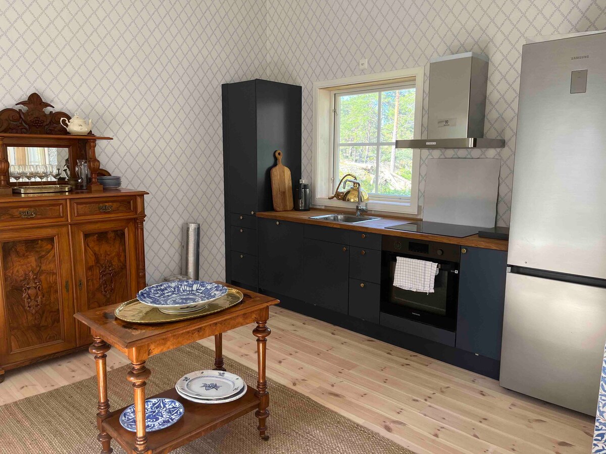 Meghívunk az 1937-ből származó bájos, fénnyel és a tetőgerincekre és fák tetejére nyíló kilátással teli, 1937-ből származó bájos házunkba. Itt egy félreeső, idilli oázist találsz Vaxholm szívében. Itt megtapasztalhatod a békét és a magánéletet a szigetcsoport élénk hangulata ellenére a kikötőben és a mindössze néhány száz méterre lévő Rådhustorget környékén. Van hely 4 felnőttnek és 1 kiságynak