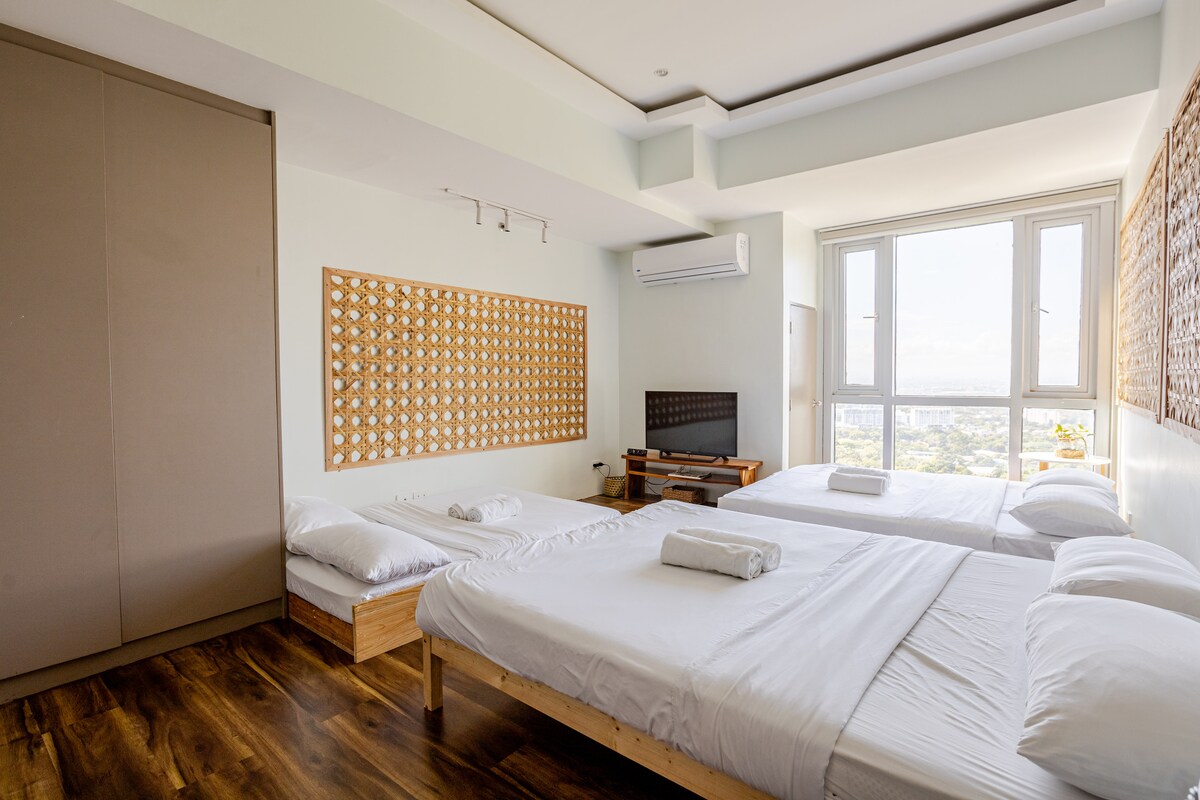 Welcome home to BGC, the most modern financial district in Metro Manila. This 101-sqm (1,087 sq ft) loft-type unit with 2 bedrooms is tropical-designed with a picturesque view of Manila Golf and Country Club, and on a clear day the Laguna Lake in the east. We can accommodate up to 12 guests, but please make sure to adjust the headcount and indicate the correct number of guests when booking to see the accurate pricing😊