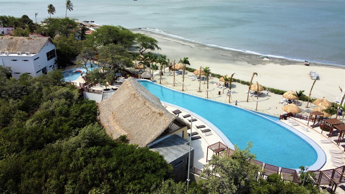 🌊 Érezd jól magad Santa Martában egy tengerparti klubban, amely ideális családoknak vagy barátoknak. A következőket tartalmazza: 🛁 Pezsgőfürdők. 🛏️ 3 hálószoba queen méretű ággyal, egyszemélyes ággyal és kétszemélyes ággyal. 🍳 Felszerelt konyha. 🌅 Privát erkély óceánra néző kilátással. 🏖️ Közvetlen hozzáférés a strandra. 🏊 4 medence. 🏋️ Edzőterem. 🧖 Gyógyfürdő és nedves területek. 🛝 Játszótér gyerekeknek 🍽️ Étterem reggelivel. 👩💻 Közös munkaterület. 🔐 Biztonságos és csendes környezet.