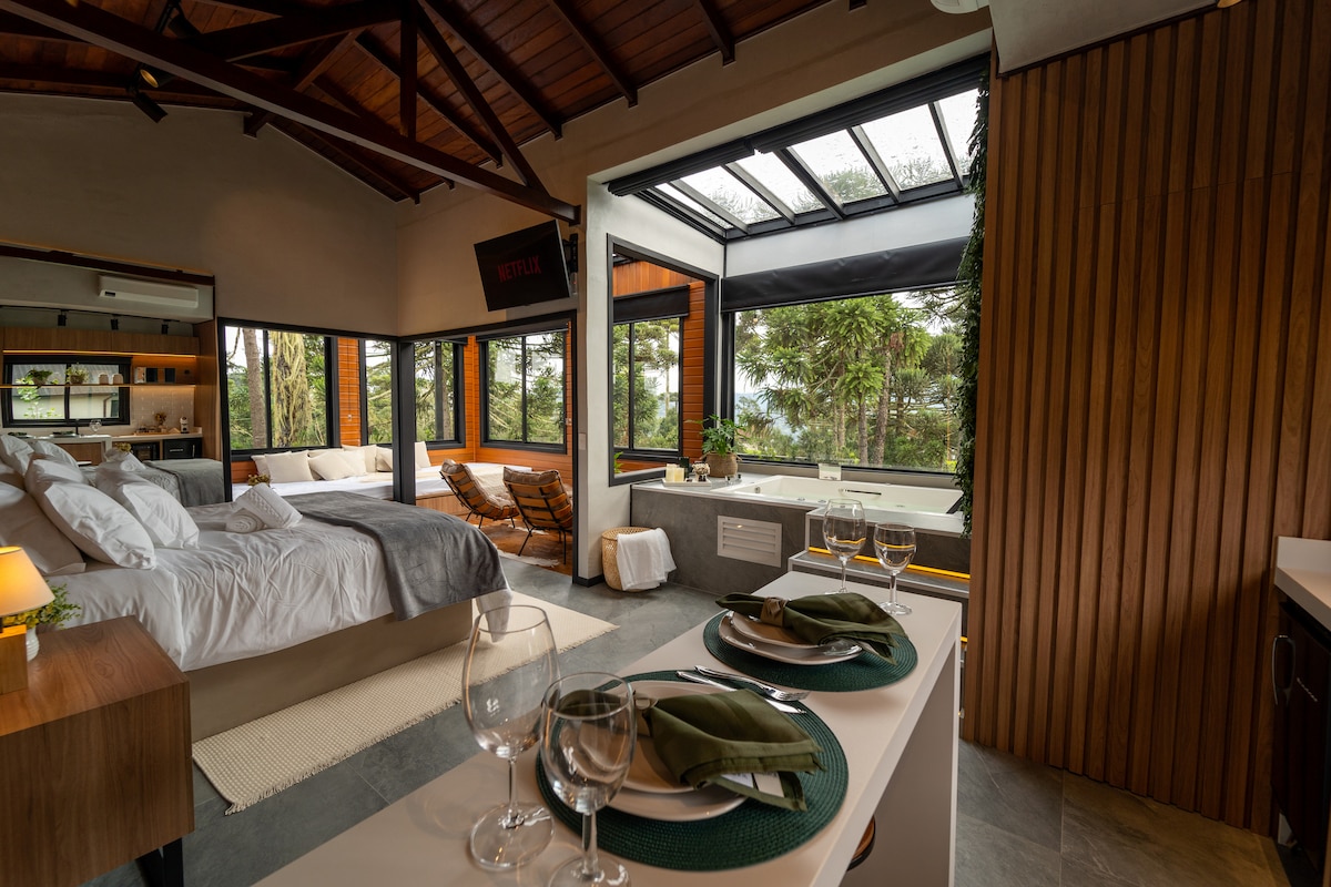 Egy hely, amely maradandó benyomást tesz rád. Teljes magánszférával elmerülünk az erdő közepén. A Morro da Igreja bejáratánál, a Parque das Araucáriasban található Grota Urubici olyan élmény, amely 1450 méteres magasságban egyesíti a természetet, a kifinomultságot és a modernitást. Teljesen felszerelt konyha, gázzuhany, 500/500 MB-os üvegszálas internet és egy 75 hüvelykes tévé Netflix-, Prime- és HBO-max- és hangrendszerrel. Az ágy king-size méretű. Vannak függönyök a hálószobában. Irodahelyiség