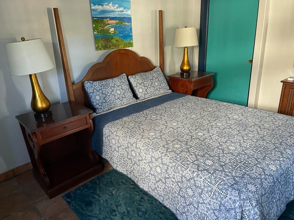 Békés, félreeső, tengerparti lakás. Elkerített, bekerített udvar gyümölcsfákkal. Közel a bevásárlóközponthoz, az élelmiszerbolthoz, a kórházhoz. Új légkondicionáló, teljes konyha, queen méretű ágy, kihúzható Queen, ágynemű, strandszékek, törölközők, sznorkelfelszerelés, terasz több ülőhellyel/heverővel. Közös pavilon grillezővel, függőággyal és szabadtéri étkezővel. 10 perc autóútra a Christiansted sétánytól, az étkezéstől és a repülőtértől. 20 perc autóútra Frederiksted, Rainbow Beach. A Tesla Solar Systemen található ingatlan tartalék áramforrással/generátorral