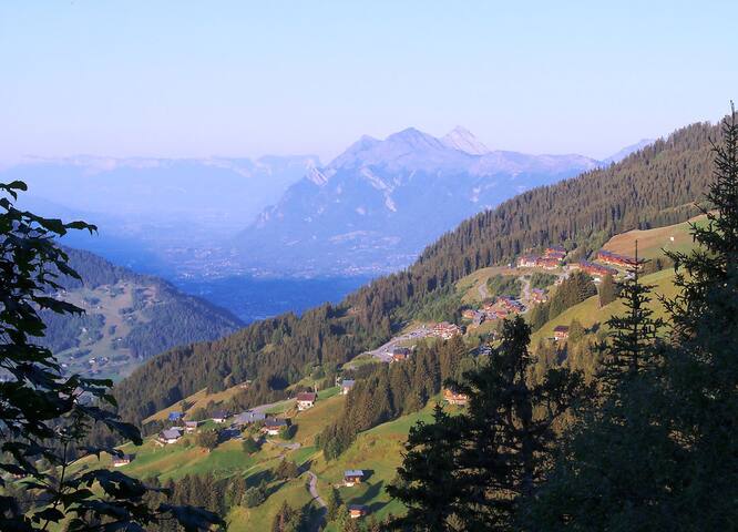 A 1500 d'altitude, idéalement situé au pied des pistes, notre chalet de six appartements, sur deux niveaux, est orienté plein sud avec vue imprenable et exceptionnelle sur le Mont-Blanc, sur toute la chaine du Beaufortain jusqu'au massif de Belledonne.