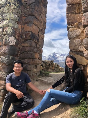 Somos una pareja recién casados, recientemente nació nuestro primer bebé y vivimos entre Ollantaytambo y Cusco, pues Carmen es natural de Ollanta. Ambos trabajamos como