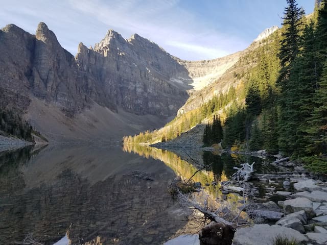 We quickly realized Dead Man's Flat is a tradeoff between budget and convenience. It is a bit further from shops and activities (10m from Canmore, about 25m from Banff) but also more secluded, cozy, calm -- and just as beautiful.