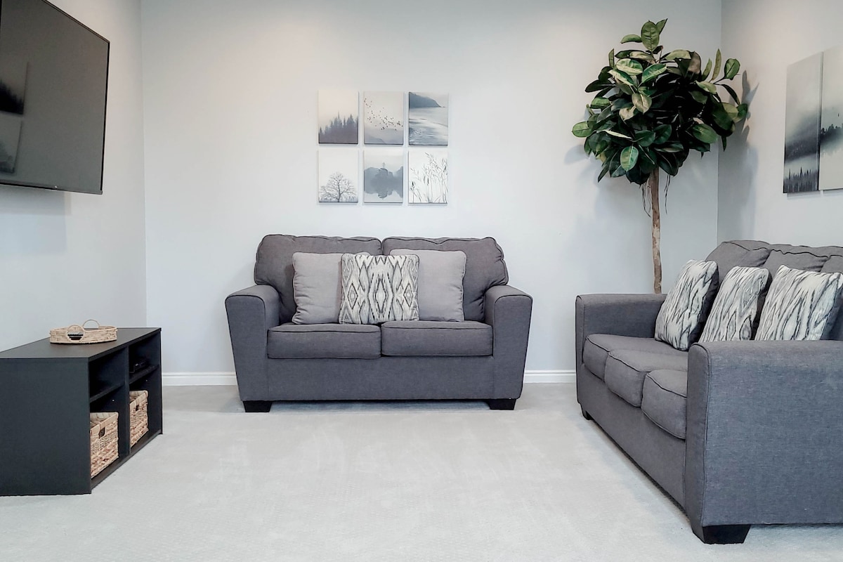 Ez egy kellemes, kényelmes pince. Egy queen méretű ággyal és kanapéággyal rendelkezik, és szükség esetén van egy queen méretű felfújható matracom is. Fürdőszobával és gardróbbal rendelkezik. Az öltöny teljes hűtővel, mikrohullámú sütővel, kávéfőzővel, kenyérpirítóval, edényekkel és intelligens TV-vel van felszerelve a saját kényelmed érdekében. Nincs saját bejárata, de a pinceajtó közel van a garázsajtóhoz, így közvetlen bejáratod lesz a stúdióba. Közel leszel az autópályához, a vonat- és bevásárlóközpontokhoz.