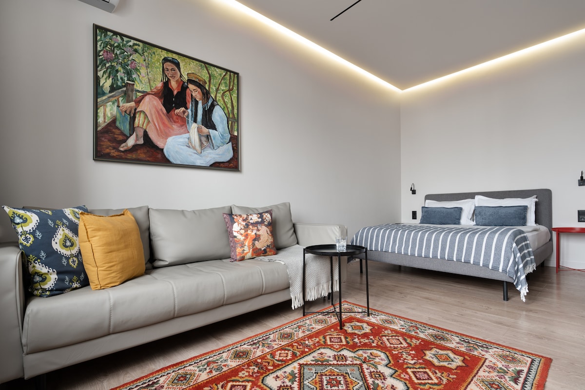 Kérjük, vedd figyelembe, hogy a lakás nem érhető el fotózáshoz vagy videózáshoz. Üdvözöljük egy hangulatos és stílusos 30 m²-es stúdióban, amely egykor Gayrat Baymatov festő műhelye volt. A lakás egy igazán egyedi épületben található, ahol a művészek még mindig élnek és alkotnak minden emeleten. Mindössze 5 perc sétára találod a következőket: • Buyuk Ipak Yuli metróállomás • Helyi bazár friss gyümölcsökkel, zöldségekkel és családi kávézókkal • „Belissimo” pizzéria • „Breadly” – finom reggelik