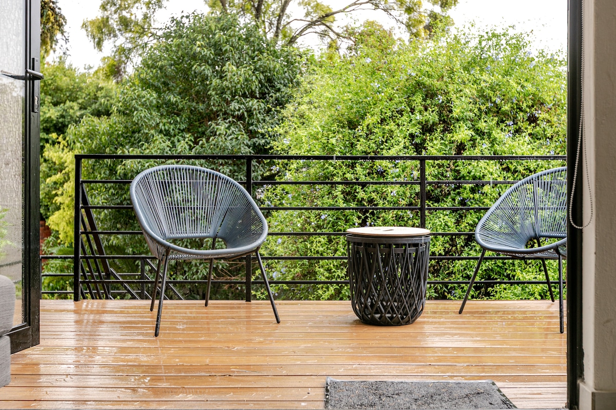 150m from trendy 4th ave cafes & shops. No car needed 2 separate double beds each with their own bathrooms Rooftop terrace in the trees & additional ground floor private patio Full kitchen with hob, full oven, fridge, washer & Nespresso coffee Backup power with solar - 2 hours durring load shedding (more during sunlight hours) Dedicated workspace with high speed WiFi - perfect work from home DStv Premium (sport channels) + Netflix Separate private entrance Also available on a longer term stays