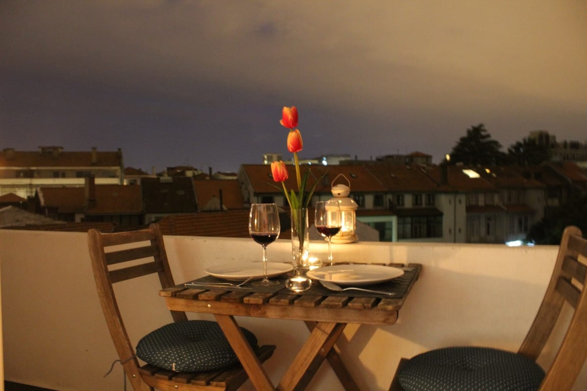 Az Alves da Veiga tetőtér Porto belvárosában található, mindössze 2 percre a Mercado do Bolhão épületétől. Ez egy 200 négyzetméteres loftlakás 2 hálószobával (egy az emeleten és egy a földszinten), 2 fürdőszobával (mindkettő a földszinten), tágas terasszal és 2 erkéllyel. Tele van fénnyel és térrel akár 4 főnek is. Az autódat a saját parkolóhelyünkön parkolhatod le, és lifttel juthatsz el a tetőre. A tágas terasz ideális a pihenésre egy hosszú nap után, és egy üveg bor elfogyasztására, miközben a belváros látképére néz!