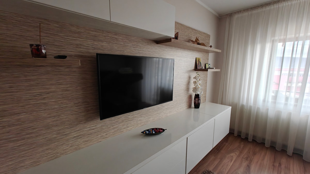 - Újonnan felújított, két hálószobás lakás, amely akár 4 vendég fogadására is alkalmas, és egy csendes, tiszta és vadonatúj átalakítási zónában található. - A belváros közelében található lakás 2-5 perc és 10 perc sétára van a Zavoi parktól. - Az épület közelében található a River Plaza Mall, szupermarketek (Lidl, Profi, Carrefour), buszpályaudvarok (1 Mai buszpályaudvar). - Az épület közelében ingyenes parkolóhelyeket is találhatsz. - A dohányzás csak az erkélyen engedélyezett.