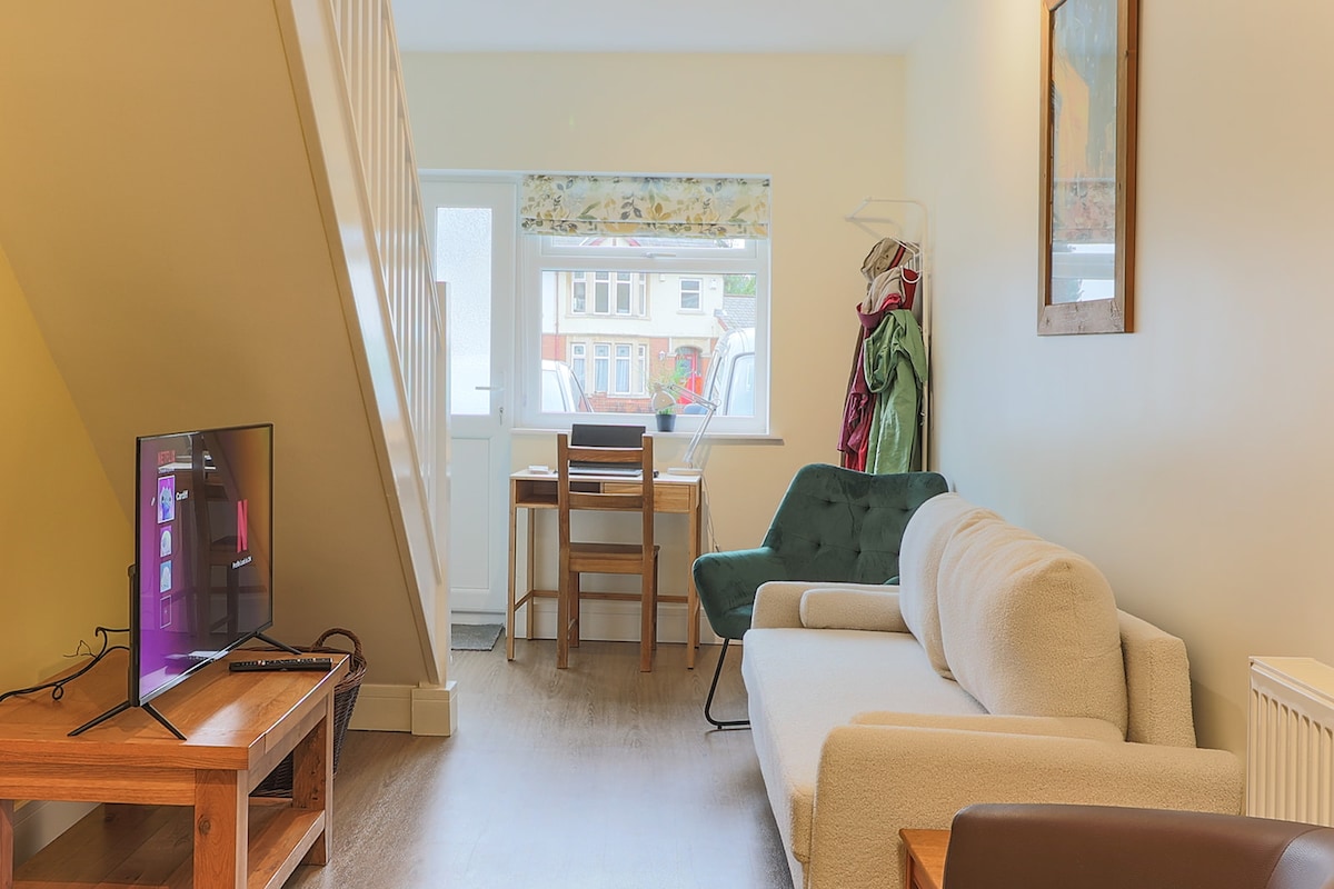 Stílusos, két hálószobás melléképület. Az emeleten 2 kompakt kétágyas hálószoba és egy kicsi/modern zuhanyzó található. A Down Stairs nyitott konyha/vacsora, társalgó/TV és külön íróasztal. * Ingyenes Wi-Fi *Ingyenes parkolás terepen (1 autó) *Síkképernyős TV * Modern zuhanyzó * Teljesen felszerelt konyha/vacsora * Külön munkaterület/íróasztal * Nagyon közel a Heath Hospitalhoz * 10 perc autóval a városközpontig * Helyi buszok és vonatok a közelben * A Roath Lake & Heath Park egy rövid sétával elérhető