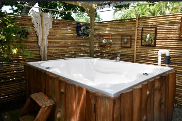 Kunyhó pezsgőfürdővel, kilátással a kávétermelő vidék kanyonjára