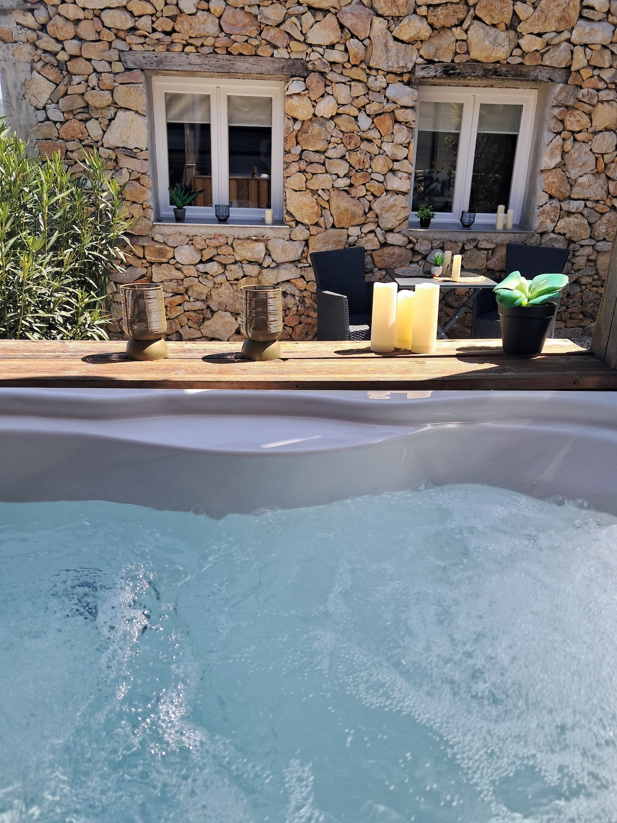 Kőház korlátlan használatú privát jakuzzival.