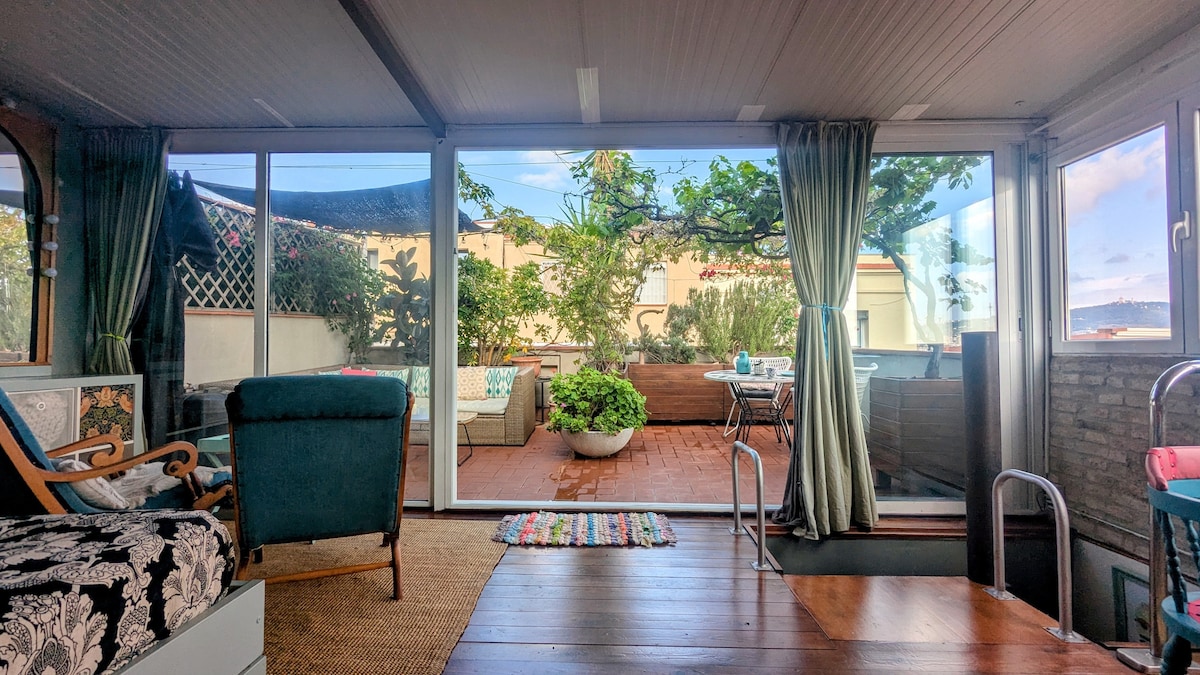 Located in the heart of the Gràcia neighborhood, a cultural, cool and authentic neighborhood. Close to Diamant Plaça. Singular flat at street level in the heart of the bohemian Gràcia district. It has it's own patio, where you can enjoy your breakfast, dinners or a quiet drink after a day in the hectic city life. The house, since1850, has 3 bedrooms: 2 rooms with double bed (one is small) 1 bedroom with 1 single bed.
