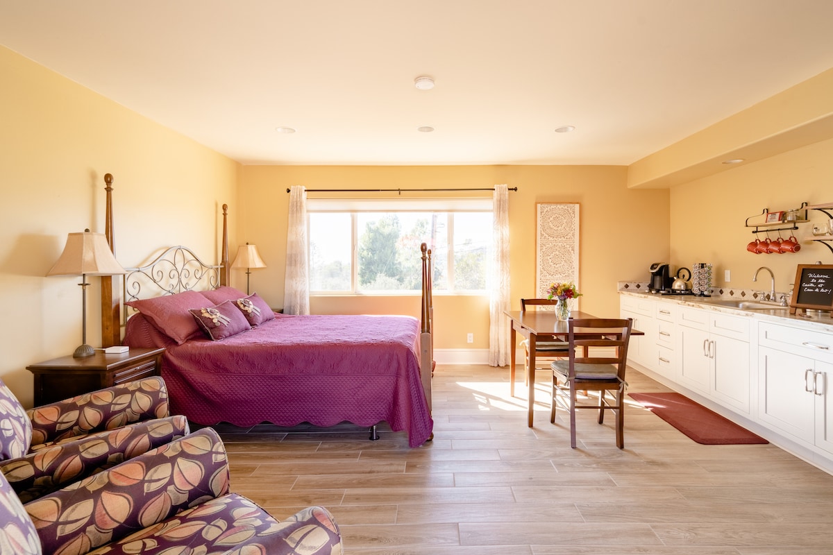 Welcome to a private oasis. Unplug and connect with nature in a peaceful setting surrounded by beautiful natural landscape. Our country guest suite has a queen size bed and optional twin bed for a third guest. Kitchenette with a mini fridge, coffee maker, cooktop and microwave. Coffee, tea and purified water provided. Private en-suite bathroom and shower. Outside you will find your private patio with a chaise lounge and sitting areas. Close to grocery stores, restaurants, wineries and casinos.