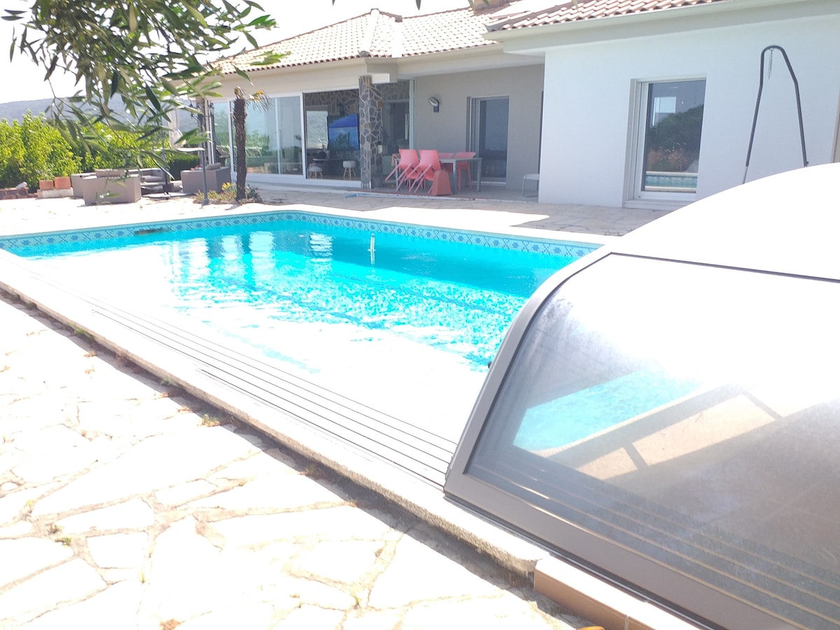 Fűtött medence és mediterrán kilátás a villából