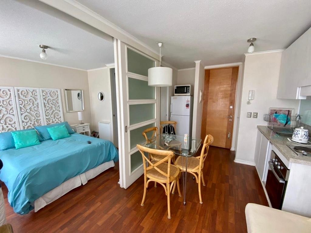 Departamento de 1 dormitorio (2 ambiente), muy bien ubicado 📍, cuenta con una cama matrimonial 🛌, totalmente equipado, cocina 🍳, baño 🚿, wifi 📶, TV con netflix 🎬, todo para asegurar una estadía cómoda ✨. A pasos del Terminal de Buses 🚌, Estación Hospital del Metro 🚇 y el emblemático parque Quinta Vergara 🌳, con fácil acceso a supermercados 🛒 y el centro comercial. Es un edificio cuenta con áreas comunes: piscina 🏊♀️, gimnasio 💪, quincho 🥩, lavandería 🧺, etc.
