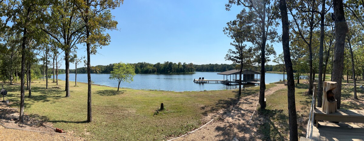 Relax with the family at this peaceful cabin on the lake. Enjoy fishing from the small private dock, kayaking, canoeing & s’mores! Bait shop within walking distance. Enjoy your morning coffee on lg front porch or enclosed back porch. Sandy beach area is less than a mile. Just 1.5 hours east from downtown Dallas. 5 min from charming downtown Mineola with shops and dining options. 10 min away from Mineola Nature Preserve & 30 min away from Canton Trade Days. 30 min away from Lake Fork.